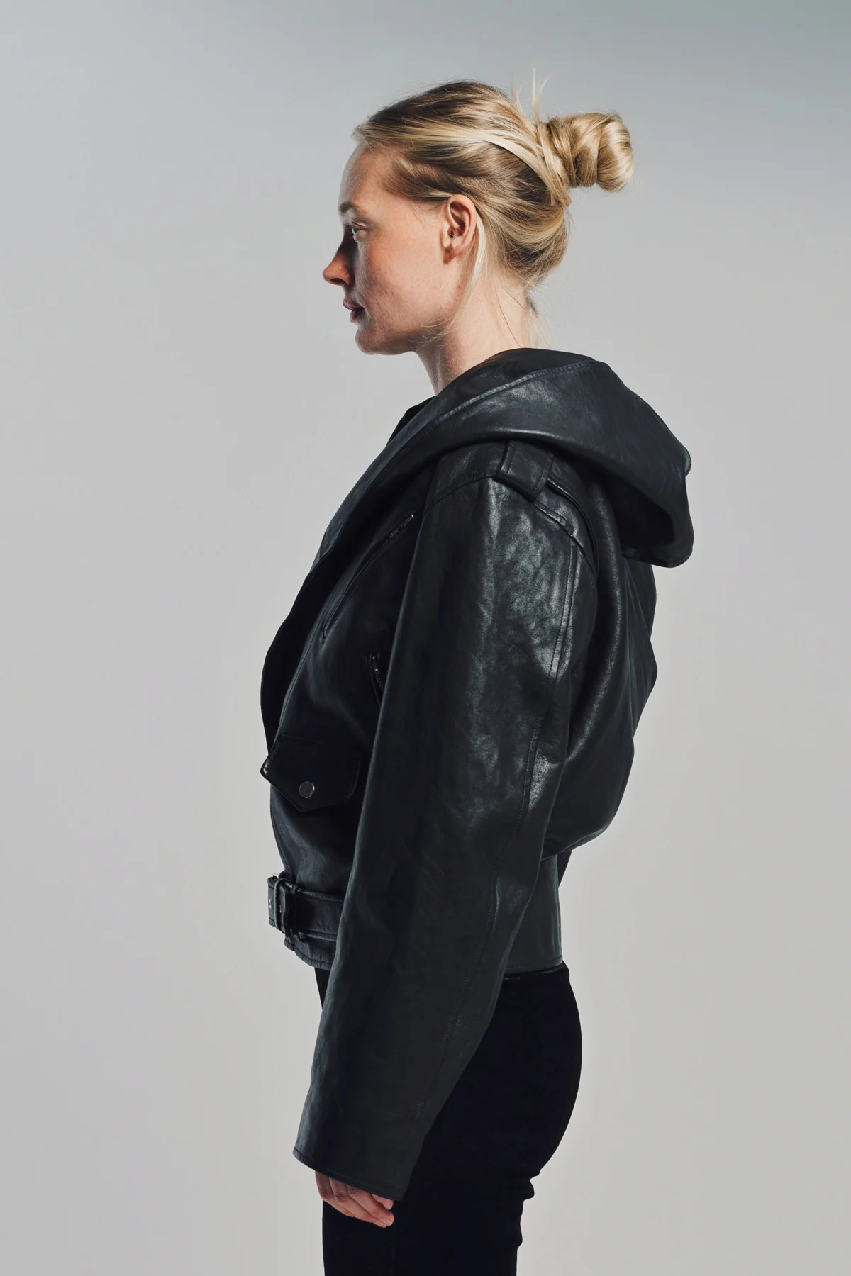 ALAÏA | LEATHER HOODED BIKER JACKET