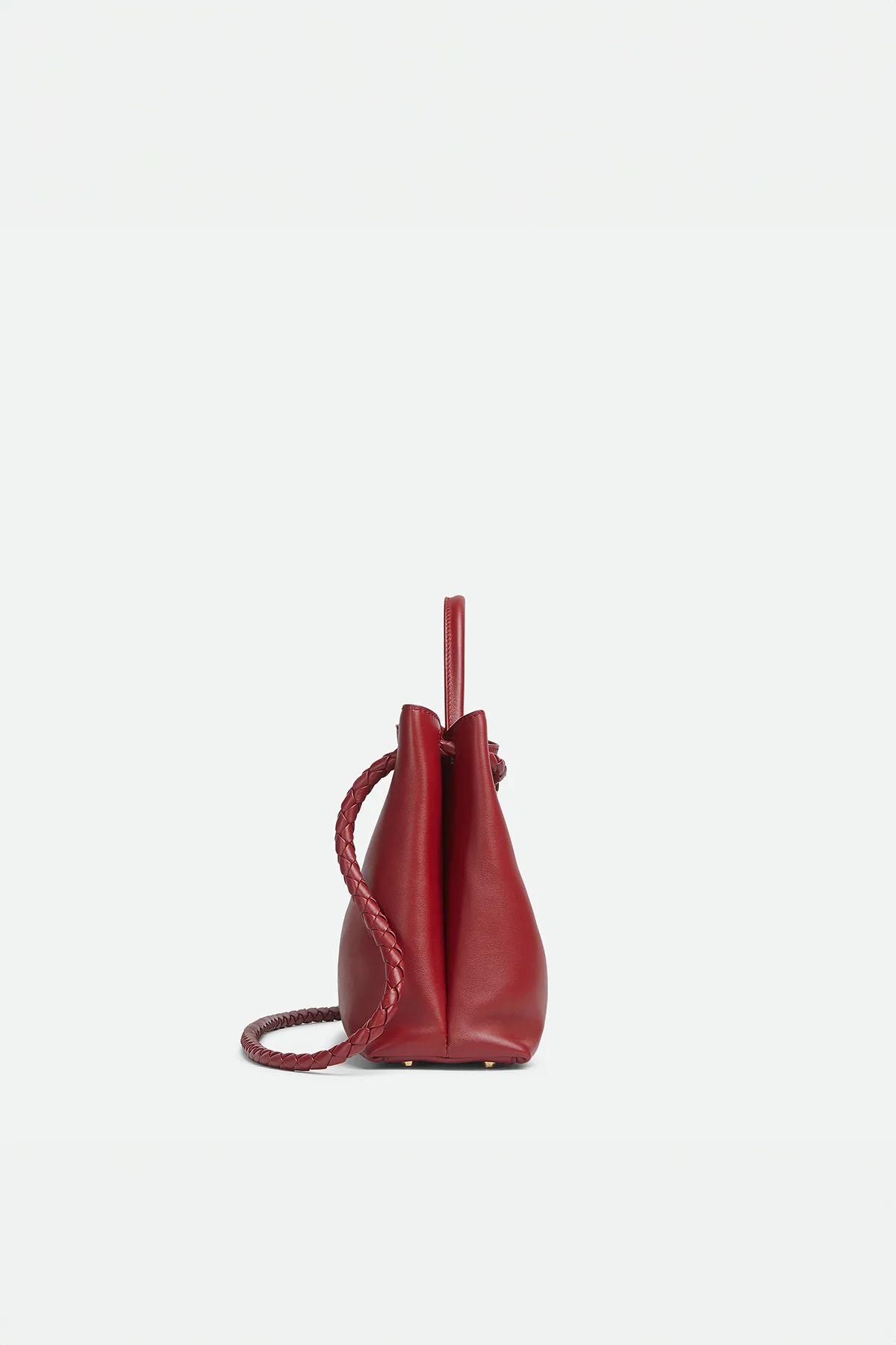 Bottega Veneta Andiamo Top Handle Bag. Top handle bag in silky calf leather with signature knot detail and sliding cross-body strap. Intrecciato leather internal pocket. Magnetic closure.