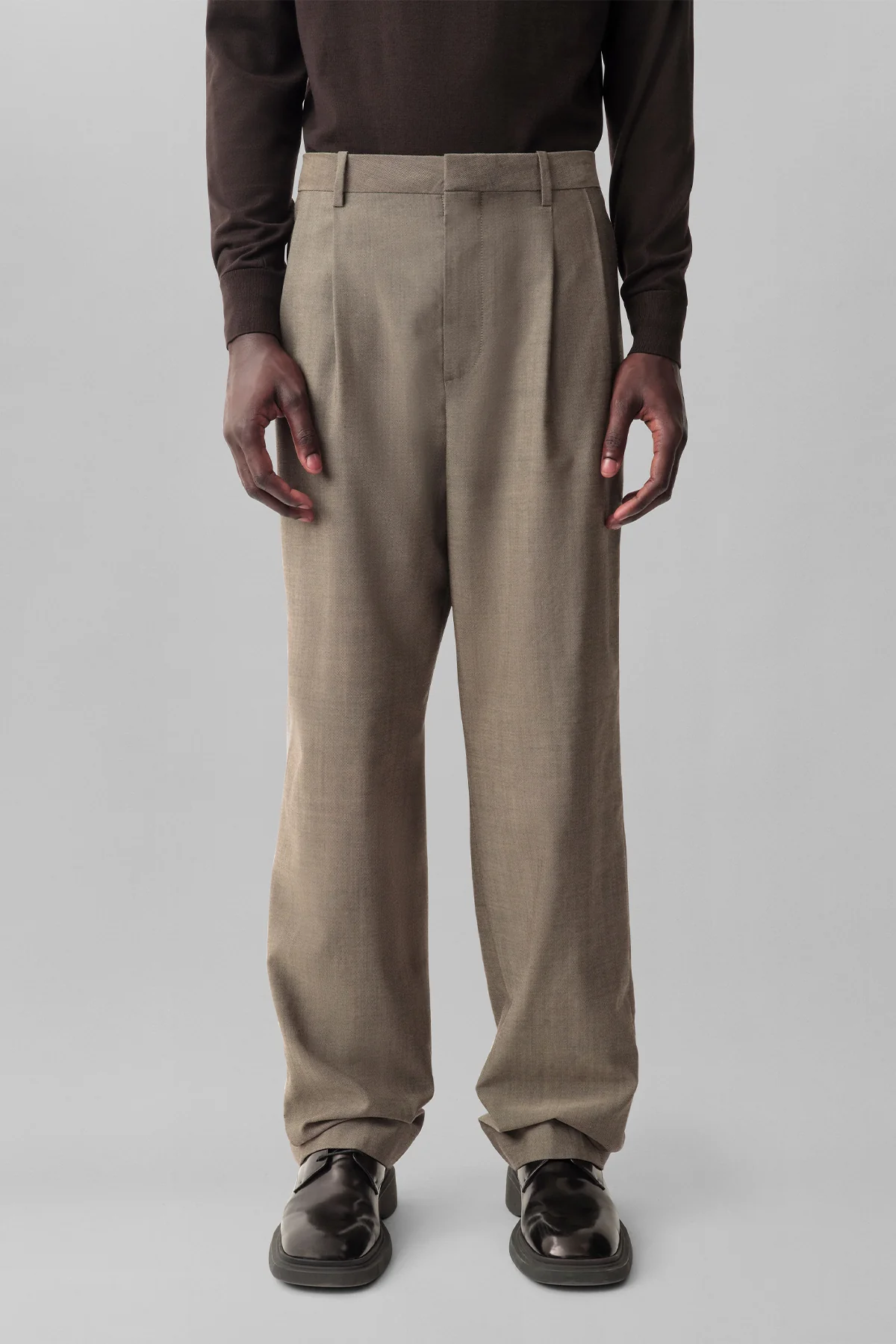 The Collins Pants from Calvin Klein Collection Fall Winter 2025, designed by Veronica Leoni, are double-pleat trousers with a dropped rise and subtle wide leg, crafted from 100% lightweight mĂ©lange wool as part of the brandâs return to runway minimalism.