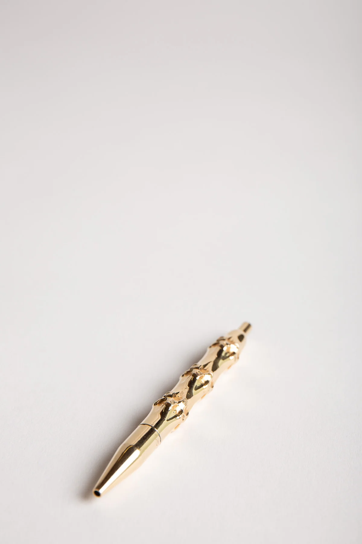 The 1960's 14K Bamboo Pen by Cartier is a yellow gold writing instrument featuring a design inspired by bamboo and incorporates a retractable button function.