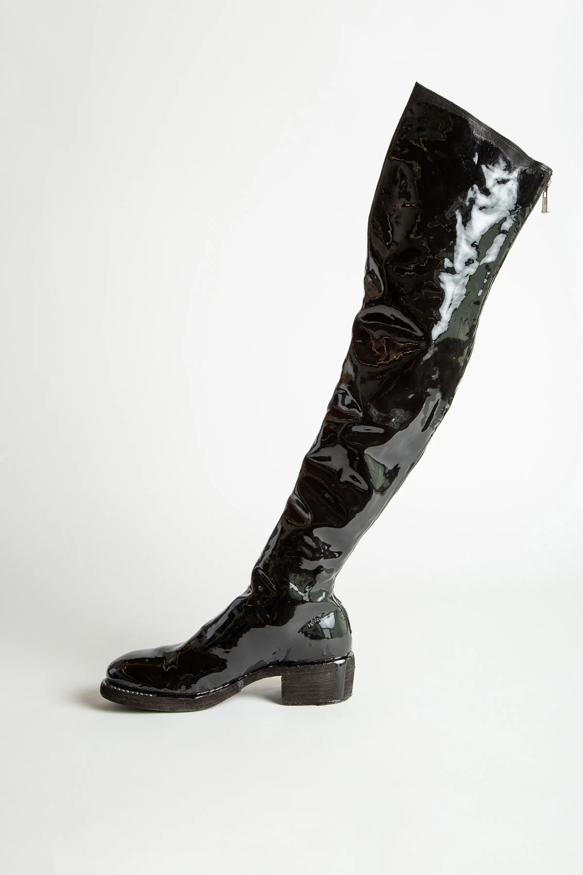 The 7912Z LTXB Knee-Length Boots from Guidi are crafted in soft horse full grain patent leather and feature Goodyear welt construction. Designed with a rounded toe, stacked heel, and full back zipper, each pair is piece dyed for tonal variation and depth. A bold, sculptural silhouette with Guidiās signature artisanal finish.